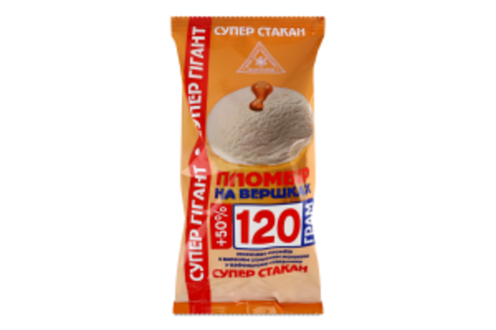 МОРОЗИВО 12% ПЛОМБІР ВЕРШКОВИЙ ЗІ ЗГУЩЕНИМ МОЛОКОМ У ВАФЕЛЬНОМУ СТАКАНЧИКУ СУПЕР ГІГАНТ МАКСХОЛОД М/У 120Г